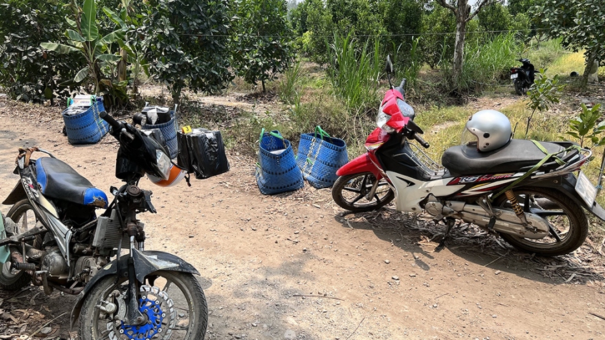 VOV.VN - Lực lượng chức năng tỉnh Anh Giang vừa phát hiện trên 2 xe mô tô đối tượng bỏ lại có chở 10 bọc nylon, bên trong chứa 2.500 bao thuốc lá ngoại nhập lậu.