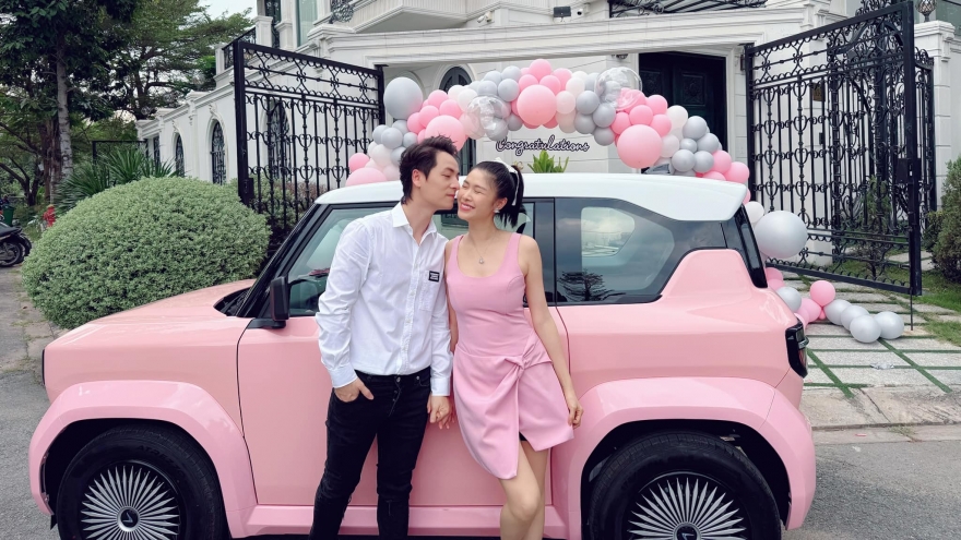 VOV.VN - Sao Việt 14/2: Kỷ niệm Lễ tình nhân thứ 19 bên nhau, ca sĩ Đăng Khôi tặng vợ Thủy Anh chiếc ô tô điện. “Năm vừa rồi vất vả vì chồng rồi, mong năm nay vợ chuyện gì cũng màu hồng nha”, nam ca sĩ nhắn nhủ tới vợ.