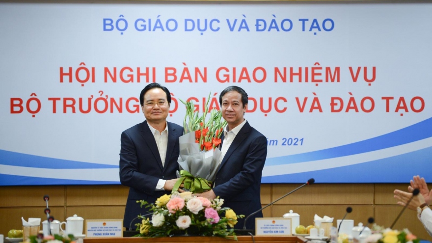 VOV.VN - Chiều 12/4, Bộ Giáo dục và Đào tạo tổ chức Hội nghị bàn giao nhiệm vụ Bộ trưởng Bộ Giáo dục và Đào tạo giữa ông Phùng Xuân Nhạ và ông Nguyễn Kim Sơn.