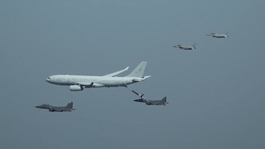 VOV.VN - Tu-95MS là máy bay ném bom chiến lược hạng nặng 4 động cơ. Clip sau ghi cảnh máy bay này của không quân Nga đang thực hiện tuần tra và tiếp nhận nhiên liệu trên không.