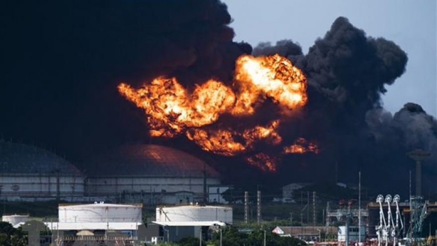 VOV.VN - Giới chức tỉnh Matanzas ngày 7/8 thông báo đã dập tắt được đám cháy ở bể chứa nhiên liệu đầu tiên và hiện đang tập trung dập lửa ở bể chứa thứ hai cũng như ngăn chặn lửa lan sang các bể chứa khác.