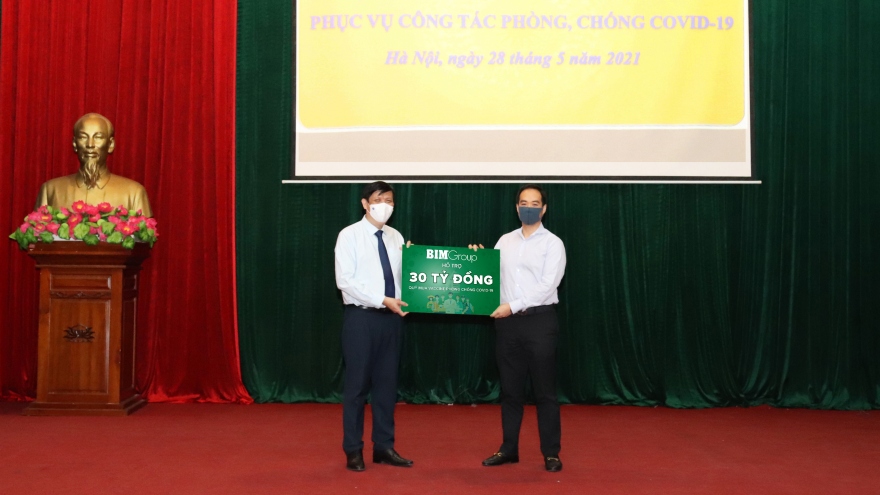 VOV.VN - Ngày 28/5, đại diện Tập đoàn BIM Group đã trao tặng 30 tỷ đồng cho Bộ Y tế ủng hộ Quỹ vaccine phòng, chống Covid-19 theo quyết định của Thủ tướng Chính Phủ.