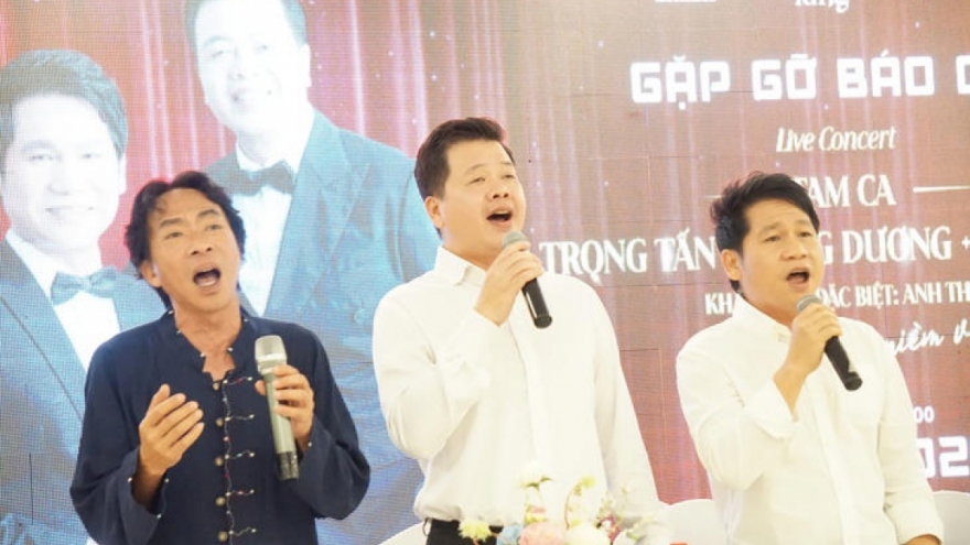 VOV.VN - Đăng Dương, Trọng Tấn và Việt Hoàn là 3 nam ca sĩ lừng danh của dòng nhạc cách mạng truyền thống. Mối duyên đặc biệt đã gắn kết họ trở thành tam ca nhạc đỏ huyền thoại suốt gần 3 thập kỷ qua. Ngày 24/5, cả 3 sẽ tái ngộ trong concert với chủ đề “Đất nước trọn niềm vui”, mừng 50 năm non sông liền một dải.
