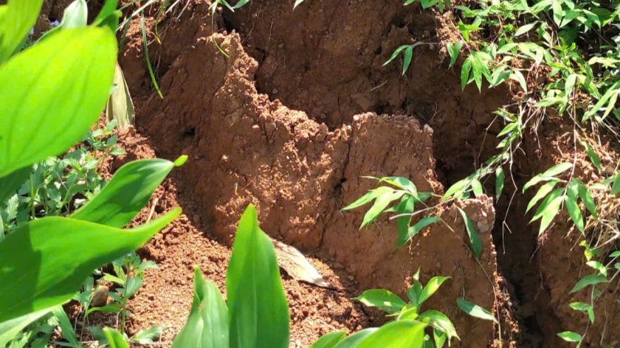 VOV.VN - UBND tỉnh Ninh Bình công bố tình huống khẩn cấp về thiên tai khi đồi Vẽo (Sơn Lai, Nho Quan) xuất hiện vết nứt dài 380m sau bão đe dọa đến hàng trăm hộ dân phía dưới.