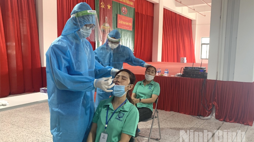 VOV.VN - Công ty giày Vienergy, KCN Phúc Sơn, xã Ninh Phúc (thành phố Ninh Bình) ghi nhận thêm 79 ca mắc COVID-19 mới, nâng số ca bệnh liên quan đến ổ dịch là trên 100 ca.