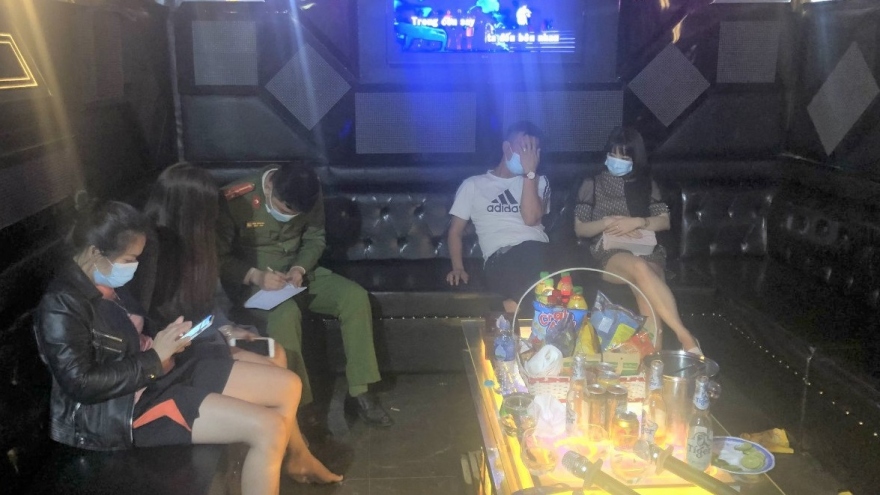 VOV.VN - Lực lượng chức năng TP. Ninh Bình, tỉnh Ninh Bình vừa mới phát hiện quán karaoke Olala phớt lờ lệnh cấm hoạt động đã mở cửa cho 27 người vào hát.