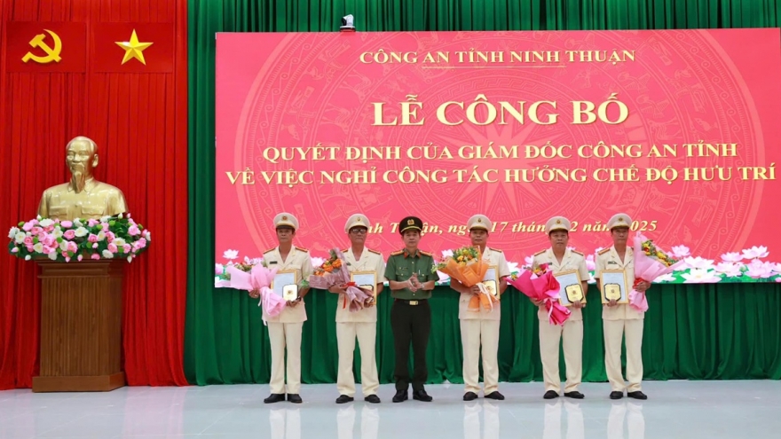 VOV.VN - Hôm nay (17/2), Công an tỉnh Ninh Thuận tổ chức lễ công bố quyết định đối với 11 lãnh đạo cấp phòng có đơn xin nghỉ hưu trước hạn tuổi phục vụ.