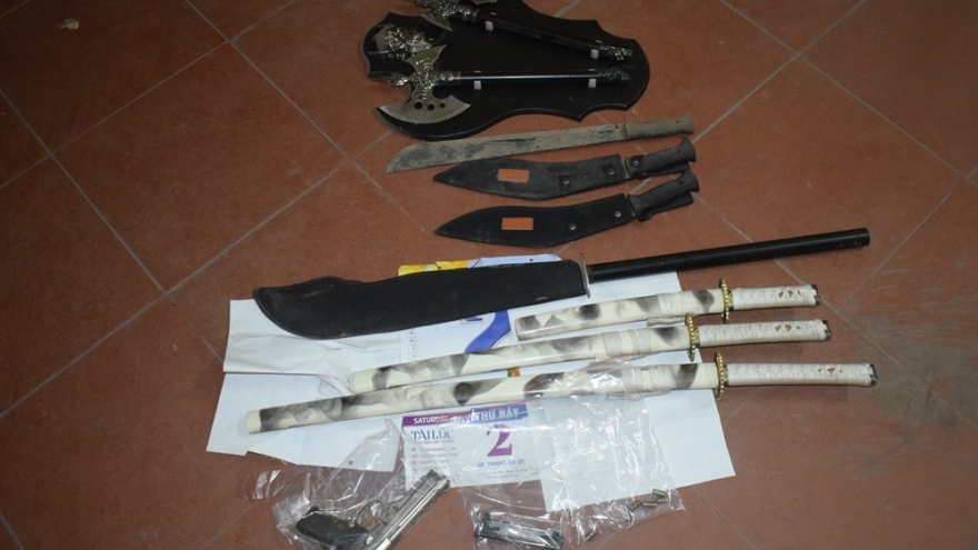 VOV.VN - Cơ quan Cảnh sát điều tra, Công an tỉnh Yên Bái vừa phối hợp với Cục Cảnh sát hình sự, Bộ Công an và Công an tỉnh Đồng Nai bắt giữ nhóm người gây ra vụ xả súng xảy ra trên địa bàn thành phố Yên Bái hồi tháng 4 vừa qua, thu giữ 2 khẩu súng.