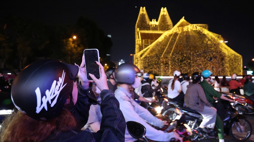 VOV.VN - Nhà thờ chính tòa Đức Bà Sài Gòn (Nhà thờ Đức Bà) – biểu tượng văn hoá, tôn giáo và du lịch của TP.HCM, đang trở thành tâm điểm những ngày cận Giáng sinh, khi khoác lên mình diện mạo rực rỡ với 1.000 km dây đèn LED.