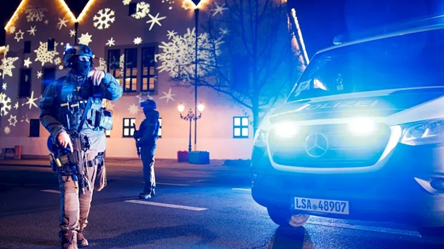 VOV.VN - Tối qua (21/12), tại Nhà thờ Magdeburg đã diễn ra lễ tưởng niệm các nạn nhân của vụ tấn công bằng cách lao xe vào chợ Giáng sinh xảy ra trước đó một ngày khiến ít nhất 5 người thiệt mạng và hơn 200 người bị thương.