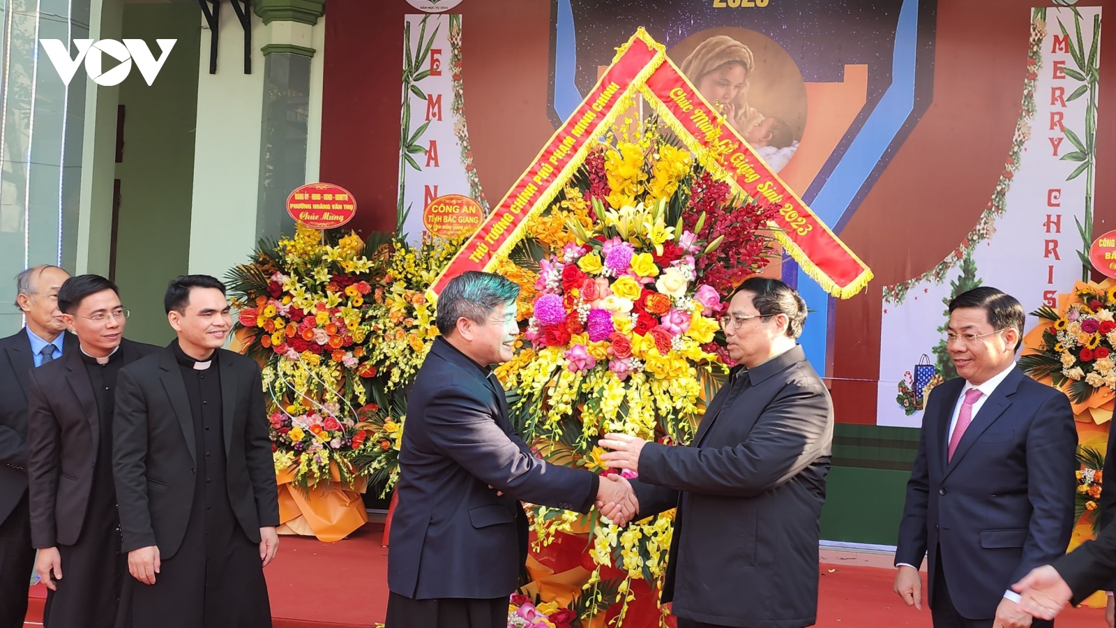 VOV.VN - Chiều 23/12, nhân dịp Giáng sinh năm 2023, Thủ tướng Phạm Minh Chính tới thăm, động viên và chúc mừng Giáo xứ Bắc Giang. Cùng đi có Bộ trưởng Chủ nhiệm Văn phòng Chính phủ Trần Văn Sơn, Bí Thư Tỉnh ủy Bắc Giang Dương Văn Thái.