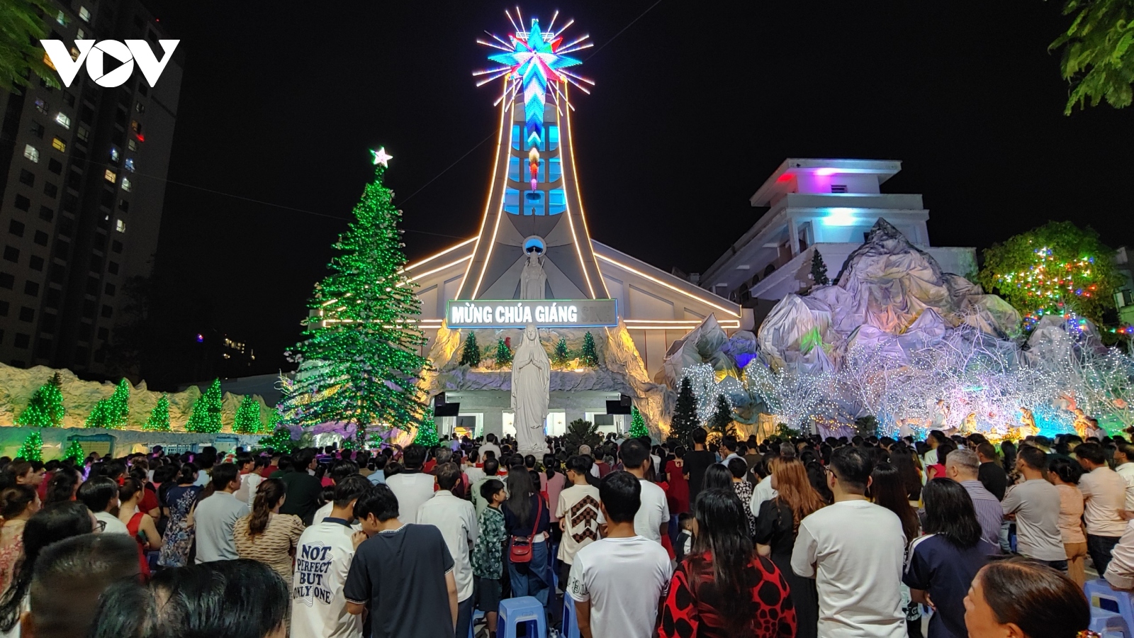 VOV.VN - Từ đầu giờ chiều 24/42, đường Phạm Thế Hiển (Quận 8) đông nghịt người đổ về hành lễ, cầu nguyện trong đêm Giáng sinh và tham quan, vui chơi tại xóm đạo lớn nhất TP.HCM.
