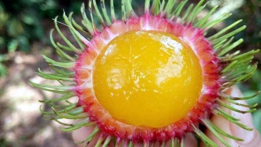VOV.VN - Chôm chôm rừng có ruột vàng óng khiến nhiều người còn lầm tưởng đây là loại quả nhập khẩu nhưng thực chất là chôm chôm rừng có xuất xứ từ miền Trung và Tây Nguyên.