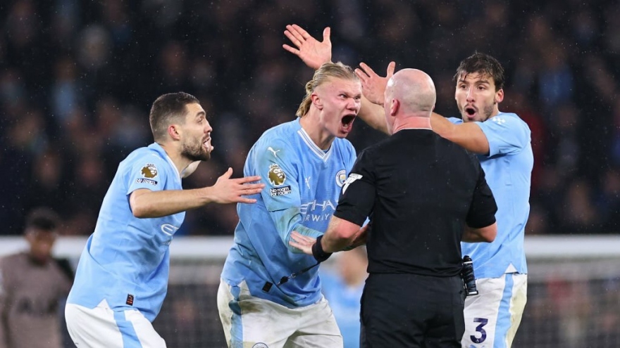 VOV.VN - Trong trận đấu giữa Man City và Tottenham tại vòng 14 Ngoại hạng Anh, Haaland vô cùng tức giận với quyết định gây tranh cãi của trọng tài Simon Hooper.