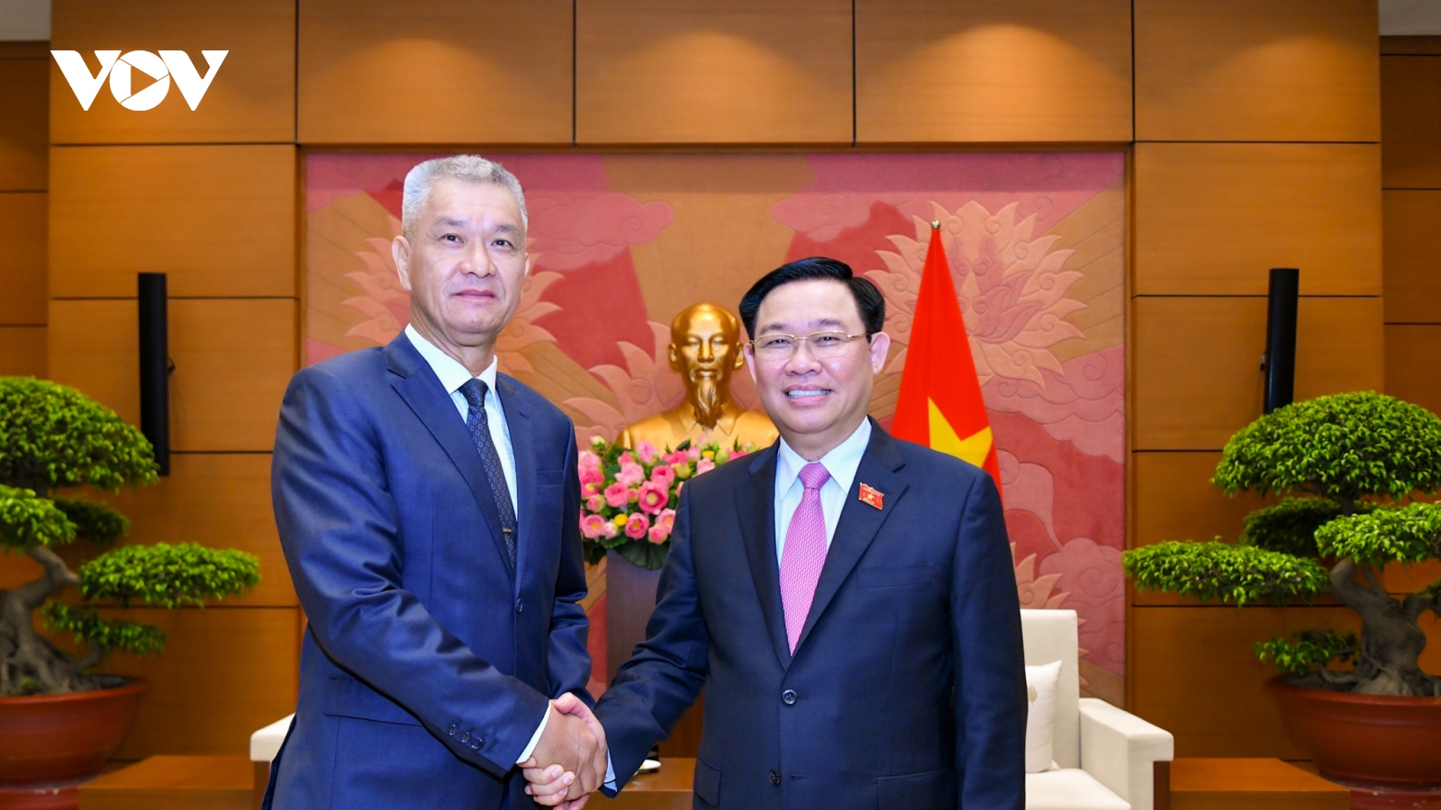 VOV.VN - Chiều tối 10/8, tại Nhà Quốc hội, Chủ tịch Quốc hội Vương Đình Huệ đã tiếp Bí thư Trung ương Đảng, Bí thư Thành ủy, Chủ tịch HĐND thủ đô Vientiane (Lào) ông Anouphap Tounalom cùng đoàn sang thăm và làm việc tại Hà Nội.
