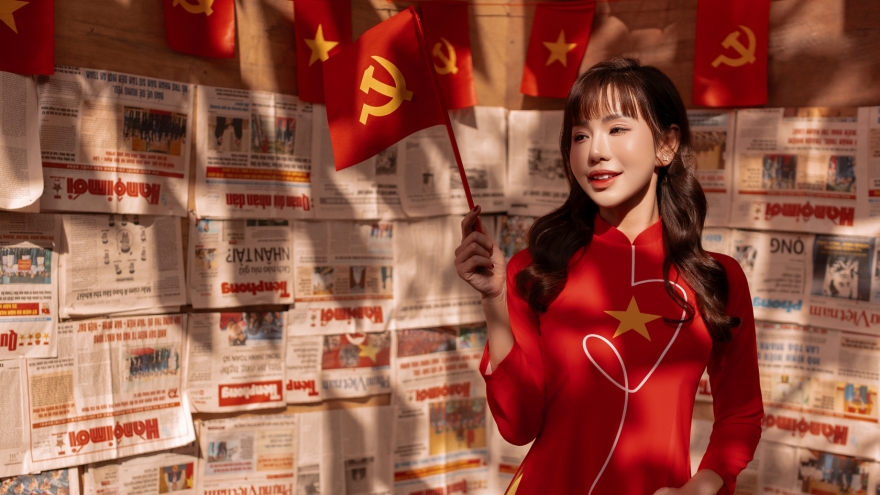 MC Hải Anh diện áo dài cờ đỏ sao vàng, lan tỏa niềm tự hào dân tộc dịp 30/4