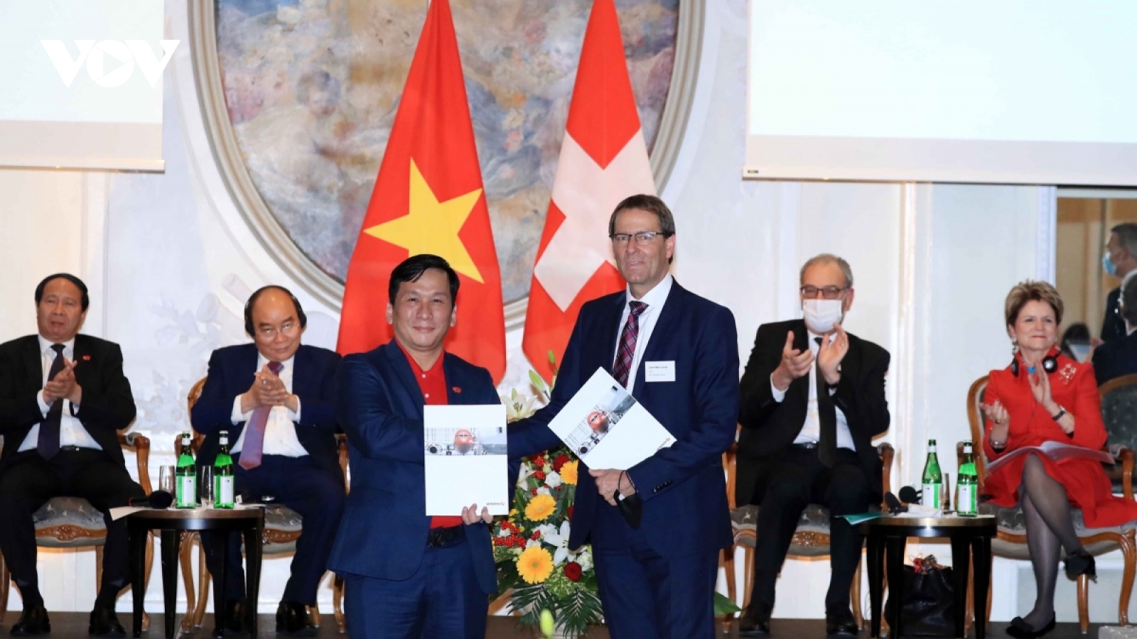 VOV.VN - Trong khuôn khổ chuyến thăm chính thức Thụy Sỹ, trong các ngày 26/11-27/11 theo giờ địa phương, tại thành phố Bern, Chủ tịch nước Nguyễn Xuân Phúc đã tiếp lãnh đạo một số doanh nghiệp hàng đầu của Thụy Sỹ trong các lĩnh vực như hạ tầng, công nghiệp nặng, công nghệ cao, điện, dược phẩm...