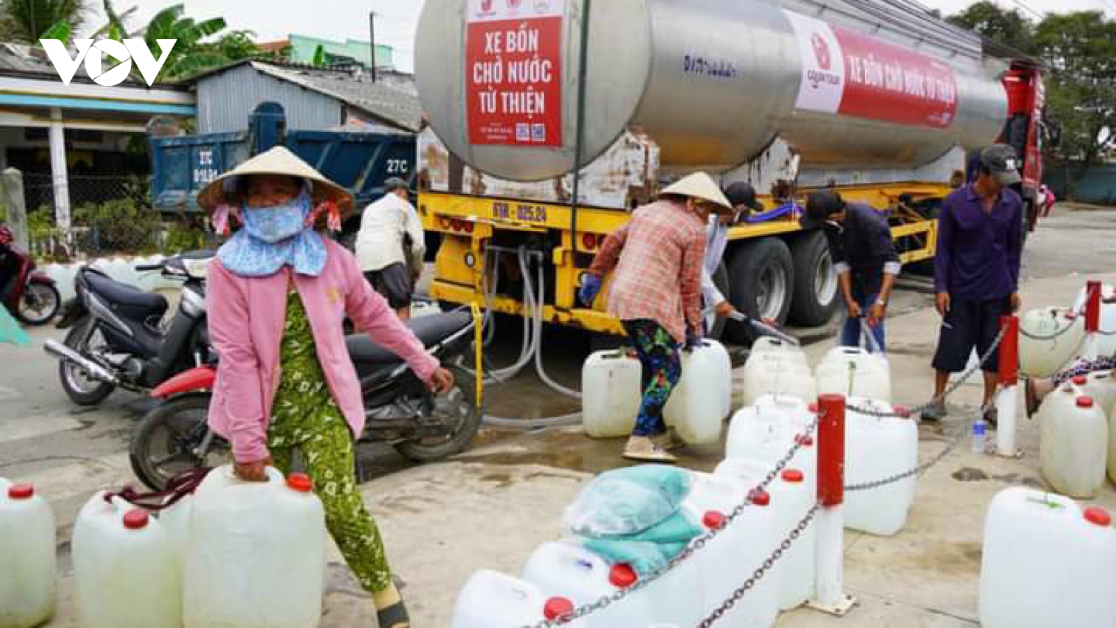 VOV.VN - Để giúp người dân vùng cù lao, vùng ven biển của tỉnh Tiền Giang đang khan hiếm nước sinh hoạt, những ngày này, các cấp chính quyền, ngành chức năng và các tổ chức xã hội, nhà hảo tâm trong và ngoài tỉnh đang tập trung công tác chuyển tải nước, đưa nguồn nước ngọt về phục vụ cho người dân, cùng vượt qua hạn mặn.