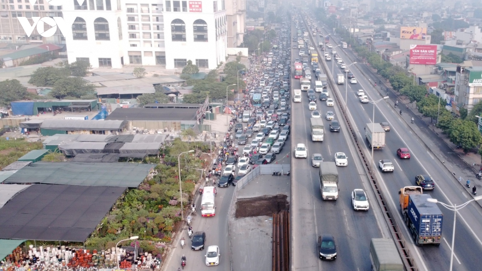 VOV.VN - Sở GTVT Hà Nội vừa thống nhất kiến nghị UBND TP nhiều giải pháp chống ùn tắc trên đường Nguyễn Xiển khi phục vụ dự án thi công Hệ thống xử lý nước thải Yên Xá. Phương án xén dải phân cách, phân luồng từ xa được tính đến.