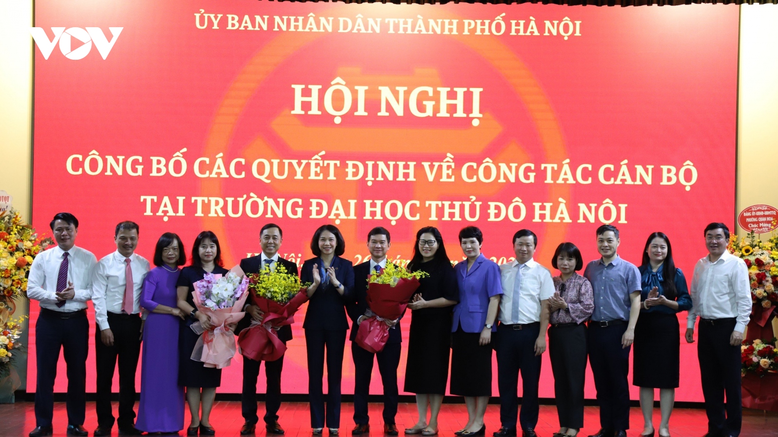 VOV.VN - Chiều nay (26/3), Phó Chủ tịch UBND Thành phố Hà Nội Vũ Thu Hà đã trao Quyết định điều động PGS.TS. Nguyễn Anh Tuấn, Phó Giám đốc Sở KH&CN TP Hà Nội giữ chức Chủ tịch Hội đồng trường Trường ĐH Thủ đô Hà Nội và quyết định công nhận TS. Đỗ Hồng Cường, Bí thư Đảng ủy giữ chức Hiệu trưởng nhà trường.