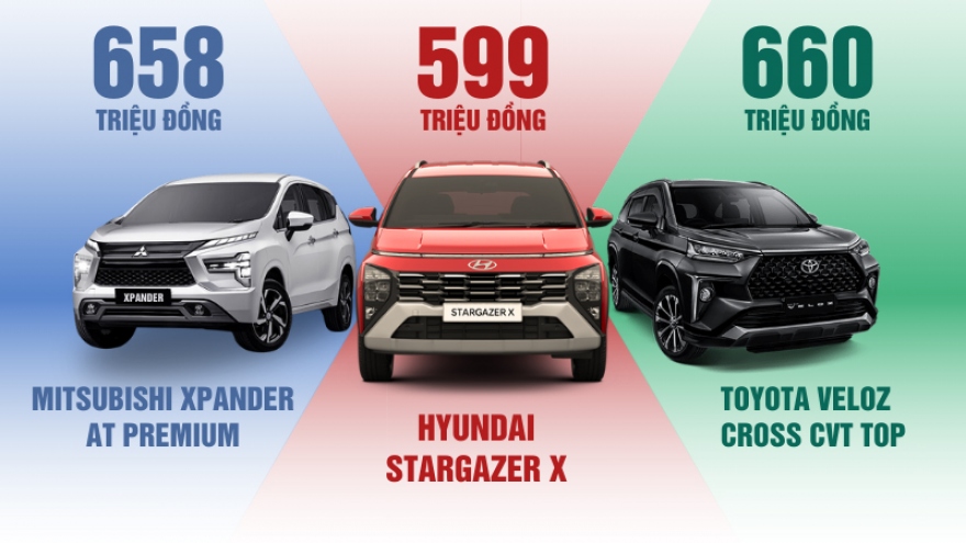 VOV.VN - Dưới đây là những so sánh về thông số kỹ thuật, tính năng và trang bị của 3 mẫu MPV phổ thông: Hyundai Stargazer X, Toyota Veloz Cross và Mitsubishi Xpander... để khách hàng có thể cân nhắc trước khi đưa ra lựa chọn cuối cùng.
