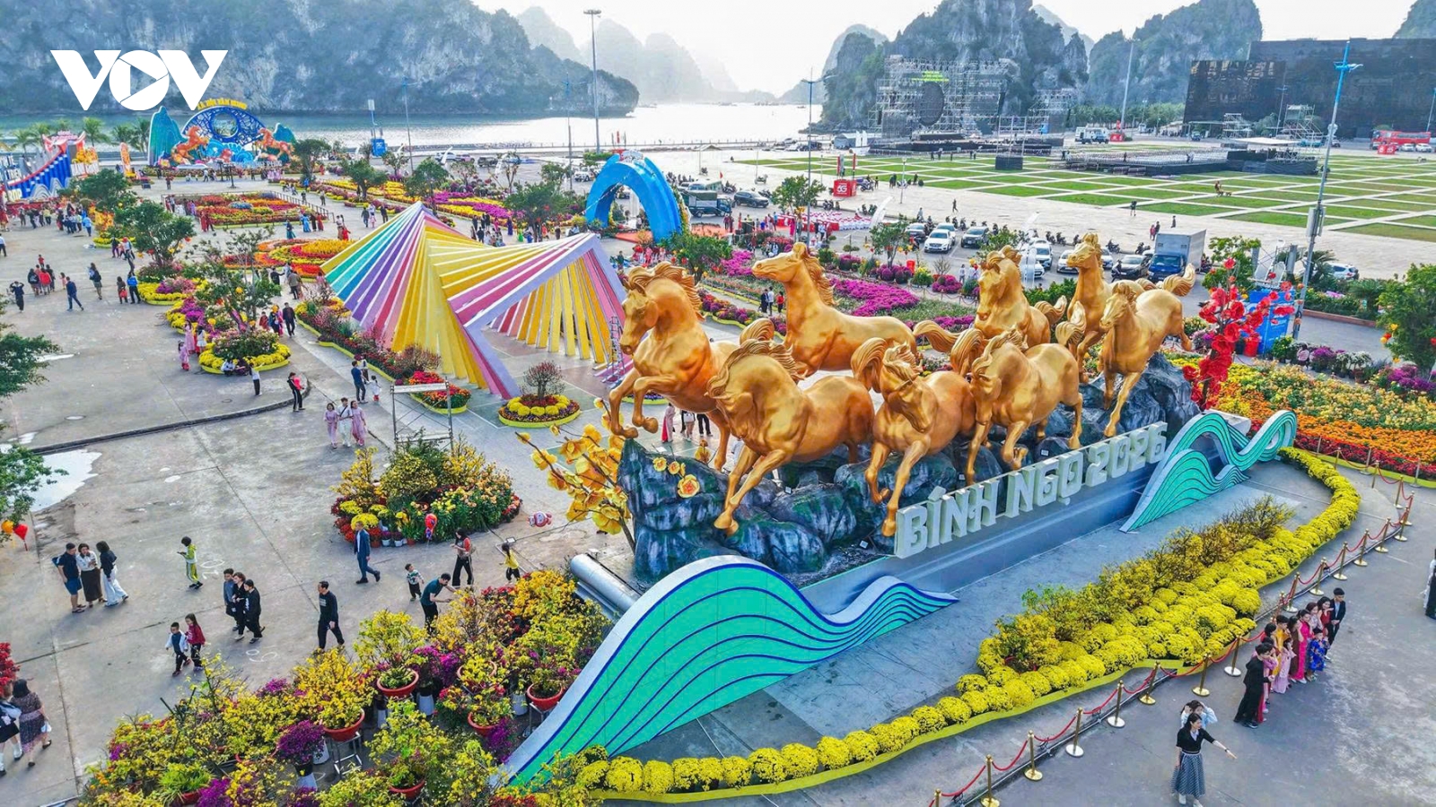 VOV.VN - 8 chú ngựa dũng mãnh cao gần chục mét là mô hình ấn tượng nhất được người dân, du khách thích thú check-in tại Đại lộ hoa và công nghệ ánh sáng bên vịnh Hạ Long, tỉnh Quảng Ninh.