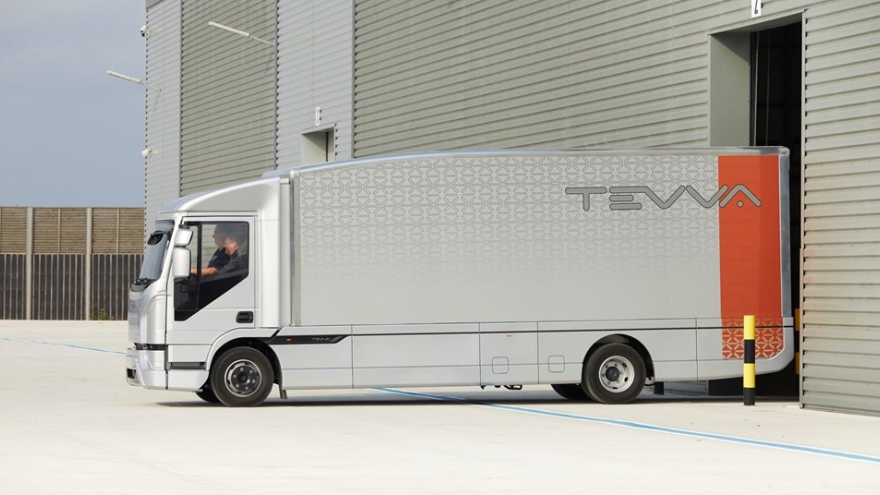 VOV.VN - Hãng ô tô Tevva của Anh mới ra mắt xe tải trọng lượng 7,5 tấn chạy bằng pin, kết hợp sử dụng Hydro làm nguồn năng lượng dự phòng. Giải pháp này giúp tăng phạm vi hoạt động của xe lên tới 500 km mà không cần dừng lại để sạc pin.