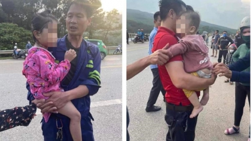 VOV.VN - Phát hiện người phụ nữ ôm 2 con nhỏ chới với dưới nước, người dân cùng 3 nhân viên công ty môi trường liền nhảy xuống hồ cứu các nạn nhân lên bờ.
