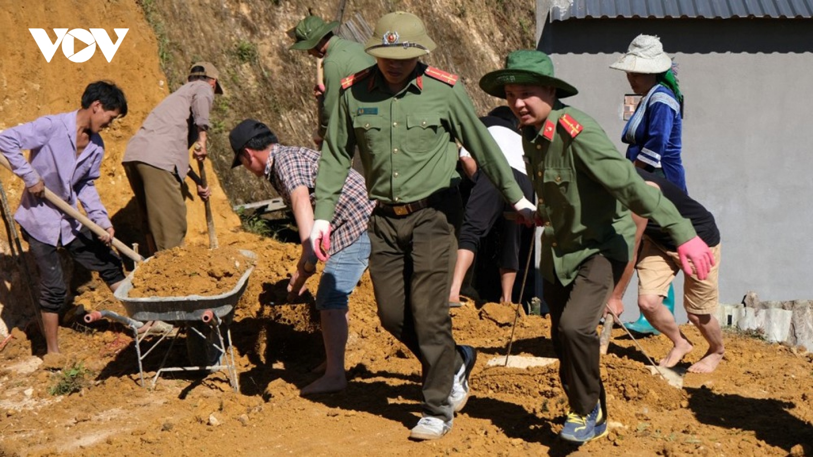 VOV.VN - Khắp bản làng ở các xã vùng cao biên giới huyện Phong Thổ (Lai Châu), đang rợp bóng áo xanh, vàng của các cán bộ, chiến sĩ hỗ trợ các hộ nghèo làm nhà để kịp đón Tết Nguyên đán 2023.