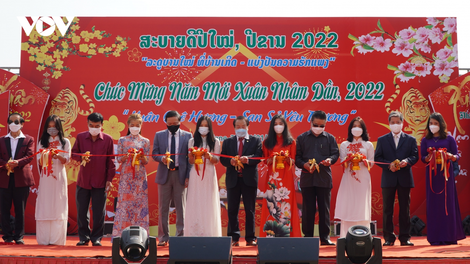 VOV.VN - Sáng nay (27/1), tức ngày 25 tháng Chạp năm Tân Sửu, Trung tâm Văn hóa Việt Nam tại Lào kết hợp với Hội người Việt Nam thủ đô Vientiane và Hội Doanh nghiệp Việt Nam tại thủ đô Vientiane tổ chức Hội chợ Xuân 2022 với chủ đề “Xuân quê hương - San sẻ yêu thương”.