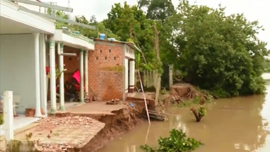 VOV.VN - Hiện nay khu vực ĐBSCL đã và đang xảy ra tình trạng sạt lở bờ sông khá phức tạp và nghiêm trọng. Những vụ sạt lở đã gây thiệt hại nặng nề đến tài sản và đe dọa đến tính mạng của người dân. Khác với những năm trước, tình trạng sạt lở năm nay diễn ra sớm hơn và mức độ thiệt hại nặng nề hơn.