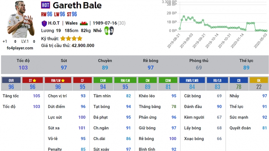 Gareth Bale mùa HOT trong FIFA Online 4 có gì đặc biệt?VOV.VN - Những chỉ số ấn tượng của tiền đạo Gareth Bale thẻ mùa HOT trong trò chơi bóng đá FIFA Online 4 (FO4).