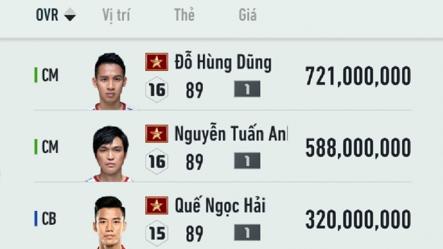 BXH chỉ số của ĐT Việt Nam trong FIFA Online 4: Hùng Dũng đứng số 1VOV.VN - Bảng xếp hạng chỉ số của ĐT Việt Nam trong FIFA Online 4, đương kim Quả bóng Vàng Việt Nam - Hùng Dũng xếp số 1.