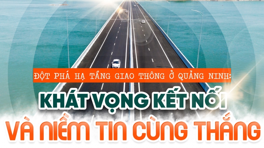 VOV.VN - Hơn 5 năm trước, Quảng Ninh không đường cao tốc, không sân bay, không cảng biển quốc tế. "Rút ngắn đường xa, mở cửa bầu trời, khơi thông cửa biển", giờ đây, từ Quảng Ninh, những "sợi chỉ đỏ" giao thông huyết mạch đã và đang kết nối, mở ra nhiều không gian phát triển mới.