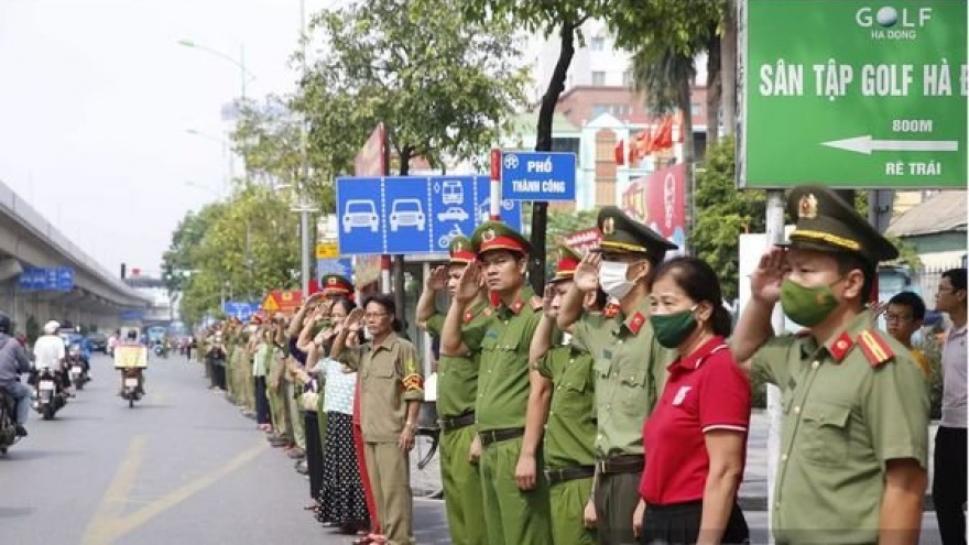 VOV.VN - Sau lời điếu văn của Trung tướng Nguyễn Hải Trung, Giám đốc Công an TP. Hà Nội, đồng đội cùng nhân dân Hà Nội đưa linh cứu của 3 liệt sĩ về đài hóa thân Hoàn Vũ (nghĩa trang Văn Điển, Thanh Trì, Hà Nội).