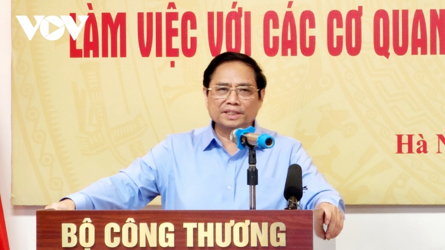 VOV.VN - Chiều tối 19/8, tại trụ sở Bộ Công thương, Thủ tướng Chính phủ Phạm Minh Chính đã làm việc trực tuyến về công tác phát triển thị trường với hệ thống cơ quan đại diện thương mại Việt Nam ở nước ngoài, trong bối cảnh thế giới, khu vực đang có nhiều biến động phức tạp.