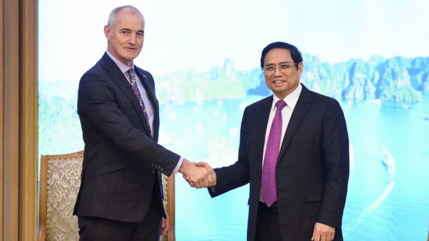 VOV.VN - Chiều 7/4, tại Trụ sở Chính phủ, Thủ tướng Phạm Minh Chính tiếp Chủ tịch Đại học RMIT Australia Giáo sư Alec Cameron. Cùng dự có Đại sứ Australia tại Việt Nam Robyn Mudie.