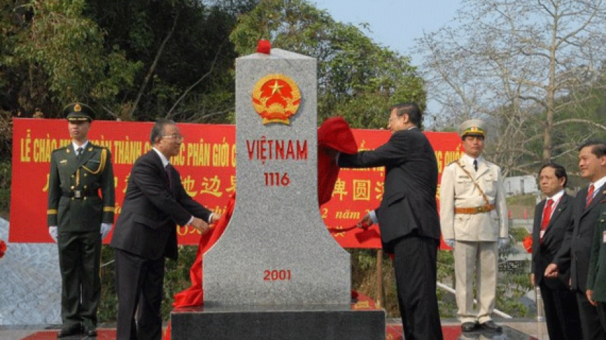 VOV.VN - Đến nay, Việt Nam đã hoạch định xong toàn tuyến biên giới đất liền dài gần 5.000km tiếp giáp với các nước Trung Quốc, Lào, Campuchia và cơ bản đã hoàn thành công tác phân giới cắm mốc.