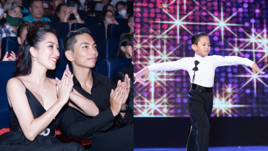 Vợ chồng Khánh Thi - Phan Hiển chăm chú xem con trai Kubi khiêu vũ