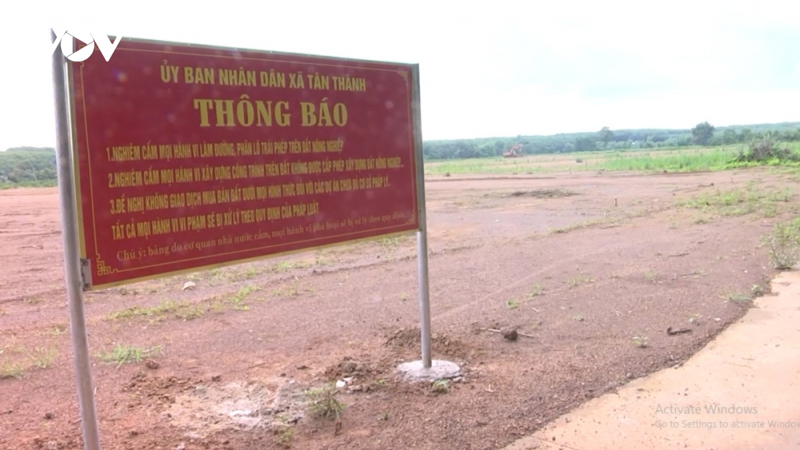VOV.VN - UBND thành phố Đồng Xoài, tỉnh Bình Phước ngày 21/8 cho biết, đã phối hợp với xã Tân Thành dựng biển cảnh báo ở khu đất rộng 9,5ha có dấu hiệu phân lô, bán nền trái phép.