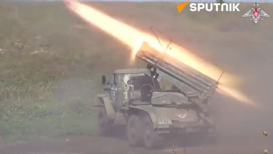 VOV.VN - Bộ Quốc phòng Nga cho biết, các lực lượng nước này đã tiến hành các cuộc không kích và triển khai pháo phản lực phóng loạt sử dụng đầu đạn nhiệt áp tấn công một loạt cứ điểm của quân đội Ukraine.