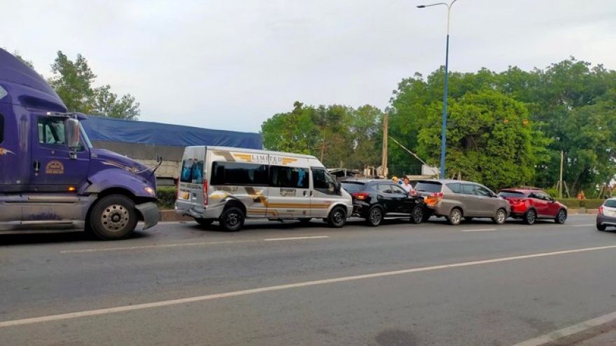 VOV.VN - Rạng sáng nay (10/11), trên cao tốc Đà Nẵng – Quảng Ngãi đoạn qua huyện Núi Thành, tỉnh Quảng Nam xảy ra vụ tai nạn giao thông, 2 xe tải va chạm nhau làm 1 xe bị lật chắn ngang đường gây ùn tắc giao thông nhiều giờ.