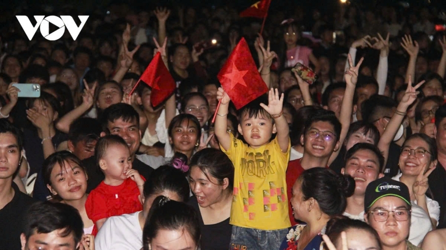 VOV.VN - Tối 25/4, tại thành phố mới Bình Dương, hàng ngàn người dân từ khắp nơi đã đổ về đây để xem chương trình nghệ thuật đặc sắc, tái hiện những trang sử hào hùng của dân tộc, và mãn nhãn với màn pháo hoa rực rỡ. Đây là hoạt động kỷ niệm 50 năm Ngày Giải phóng miền Nam, thống nhất đất nước.