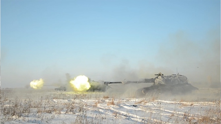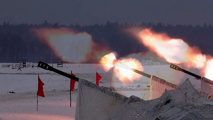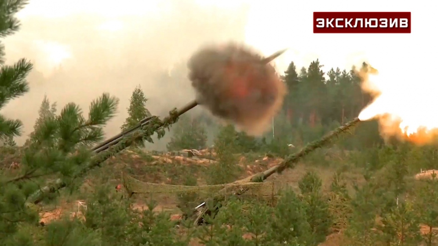 VOV.VN - Trong khuôn khổ tập trận quân sự Zapad-2021, các đơn vị pháo tự hành thuộc Quân khu miền Tây của Nga diễn tập khai hỏa vào mục tiêu giả định, "biến kẻ thù thành cát bụi".