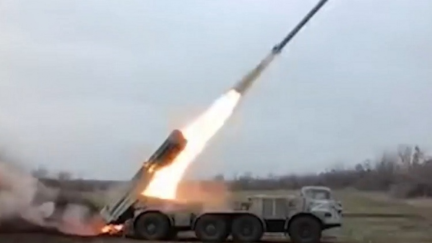 VOV.VN - Theo Bộ Quốc phòng Nga, pháo tự hành Uragan 220mm của nước này đã chứng tỏ độ chính xác và hiệu quả khi đánh trúng khu vực tập trung tạm thời của Ukaine theo hướng Kupiansk.