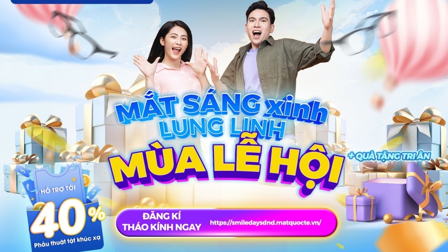 VOV.VN - Khách hàng có cơ hội nhận ưu đãi lên tới 40% chi phí phẫu thuật cận, loạn, viễn, lão thị; tặng gói thăm khám định kỳ, chăm sóc mắt sau phẫu thuật… trong ngày hội Smile Days DND 2024 của Bệnh viện Mắt quốc tế DND.