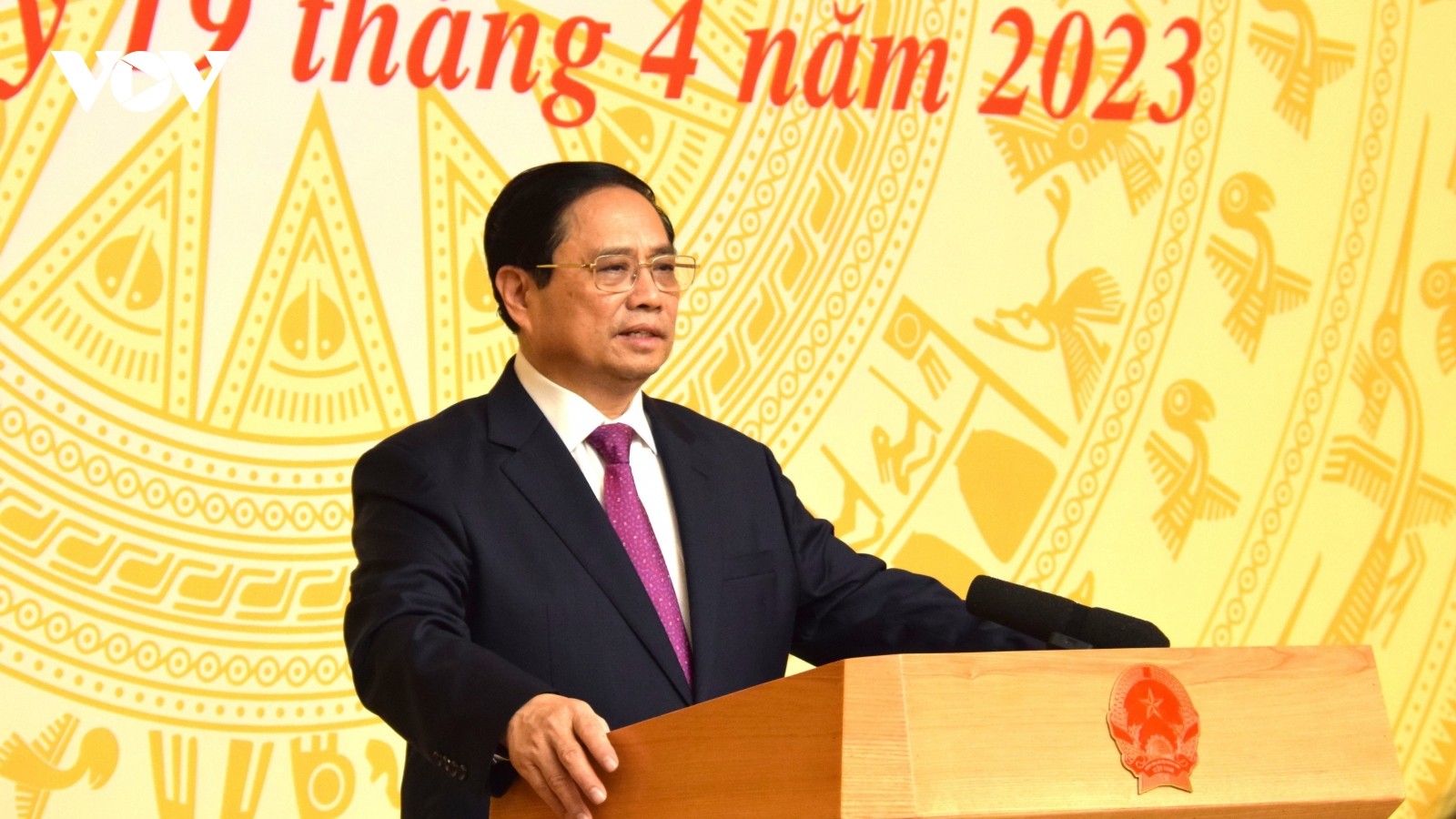 VOV.VN - Sáng 5/5, Thủ tướng Phạm Minh Chính chủ trì phiên họp Chính phủ thường kỳ tháng 4 và 4 tháng đầu năm 2023. Cùng dự có các phó Thủ tướng Lê Minh Khái, Trần Hồng Hà, bộ trưởng, thủ trưởng các cơ quan trực thuộc Chính phủ.