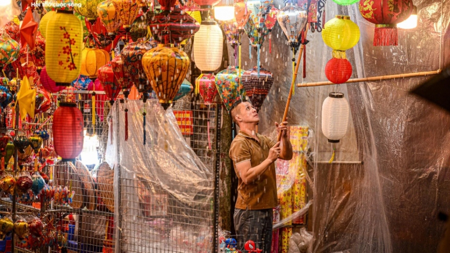 VOV.VN - Cứ đến dịp Trung thu, phố Hàng Mã, quận Hoàn Kiếm, Hà Nội lại được nhuộm đỏ bởi sắc màu rực rỡ của đèn lồng, đèn ông sao và vô vàn đồ chơi thiếu nhi, đồ trang trí bắt mắt.