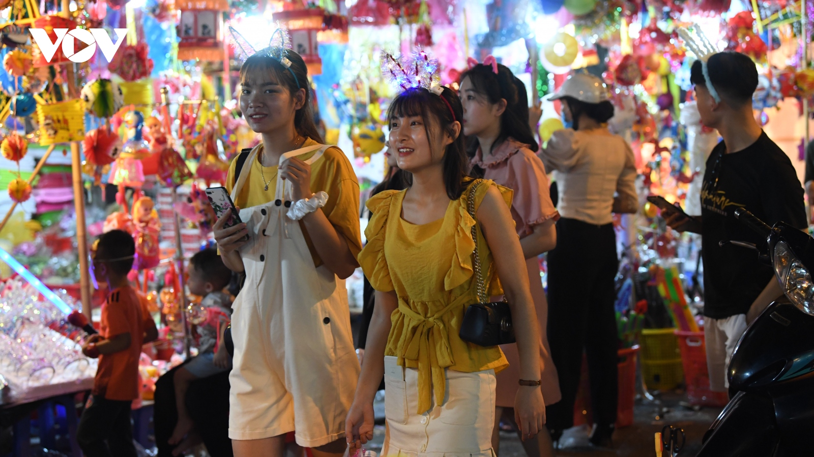 VOV.VN - Dù gần 2 tuần nữa mới đến tết Trung thu nhưng khu vực phố Hàng Mã đã được nhuộm đỏ bởi sắc màu rực rỡ của đèn lồng, đèn ông sao và vô vàn đồ chơi thiếu nhi, đồ trang trí bắt mắt khác. Đây cũng được coi là địa điểm check-in lý tưởng của nhiều bạn trẻ trong mỗi dịp lễ.