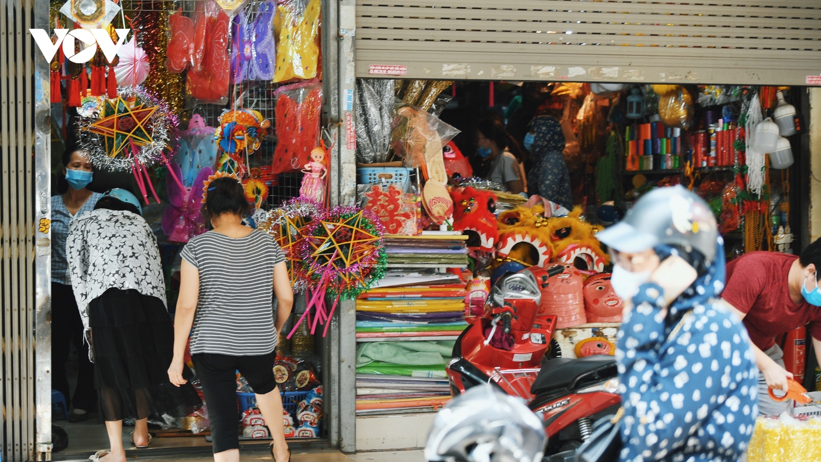 VOV.VN - Do đồ chơi, đồ trang trí không phải mặt hàng thiết yếu nên các cửa hàng trên phố Hàng Mã không được phép hoạt động. Tuy nhiên, để đáp ứng nhu cầu của người dân, một số cửa hàng vẫn mở cửa để bán đồ chơi Trung thu.